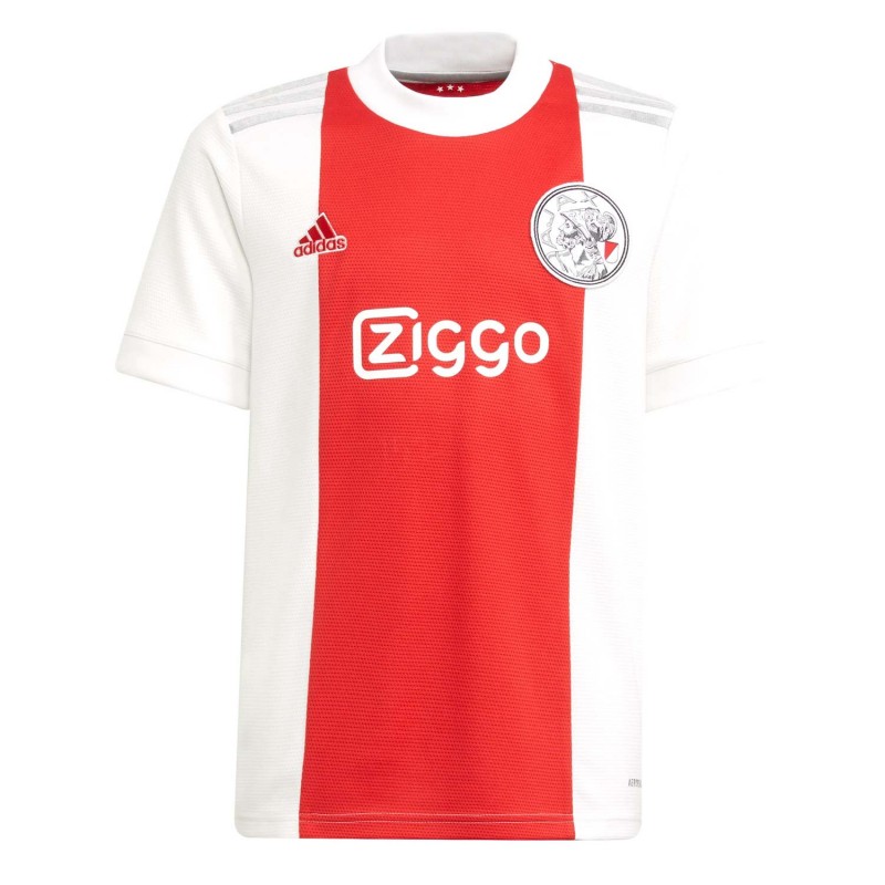 Camiseta adidas niño, diseñada para el Ajax de Amsterdam en color rojo y blanco como primera equipación para temporada 21/22 , No te quedes sin la camiseta del Histórico equipo Holandés.