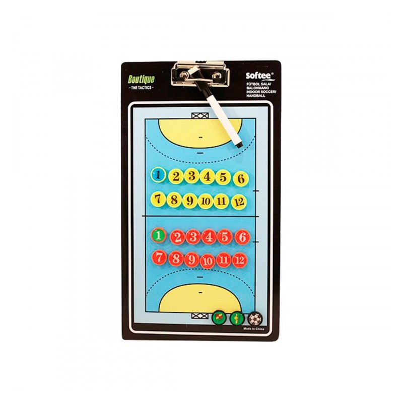 Carpeta con un alto nivel de acabados. Dispone de pizarra magnética (35 x 20 cm) con superficie de escribir y borrar (tipo velleda), incluye rotulador con borrador y fichas magnéticas, tiene dos caras una campo entero y otra medio campo.