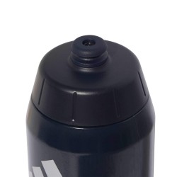 Botella Adidas de 750ml del Real Madrid. El escudo en el centro de la botella en conjunto con el logo Adidas por encima le dan la misma estética que utilizan los jugadores del Real Madrid en los entrenamientos y partidos.