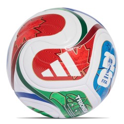 Este balón luce un diseño audaz inspirado en el balón oficial del mundial 2026. Presenta gráficos que evocan las 3 sedes del mundial, capturando la magia de Canadá, Estados Unidos y Mexico . Su superficie predominantemente blanca contrasta con paneles estelares en tonos azul
