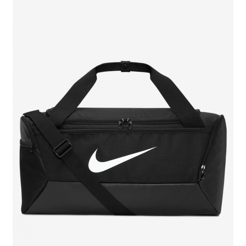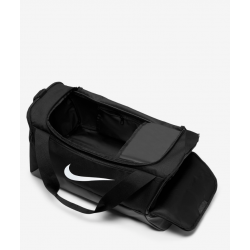 Bolsa de entrenamiento NIKE BRASILIA en color negro de tamaño mediano (41 L) ideal para transportar material deportivo de forma organizada gracias a que cuenta con un compartimiento principal de gran tamaño para guardar todos los materiales básicos de tu entrenamiento y ademas cuenta con dos bolsillos laterales de gran tamaño, uno con cremallera y otro con malla. La parte exterior inferior esta recubierta con un material resistente a rozaduras y al desgaste diario.