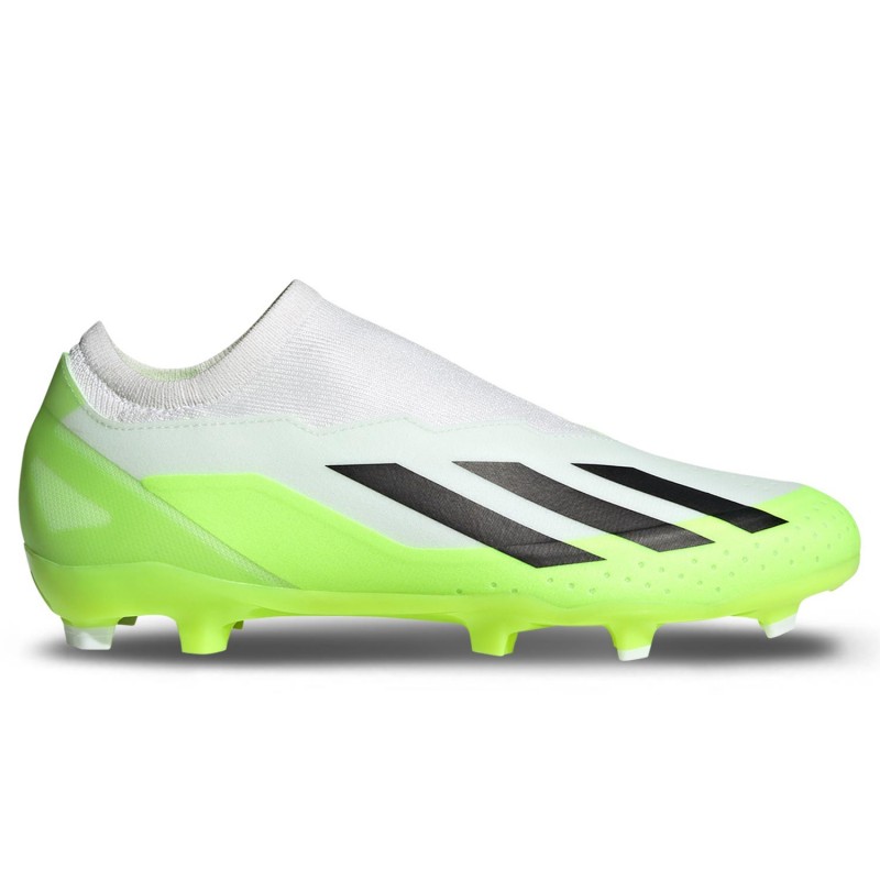 Adidas presenta esta CreazyFast.3 un modelo sin cordones que contiene una malla textil elástica, muy adaptable y fácil de colocar. Su fabricación de pequeñas microfibras muy ligeras nos aportaran una bota muy maleable y de poco peso. Este modelo pertenece al CreazyRush Pack que contiene un potente color amarillo flúor que se va degradando hacia arriba llegando al color blanco.