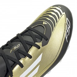 La Adidas F50 están diseñadas para ofrecerte la máxima velocidad dentro de un campo de futbol y su máxima demostración es el astro argentino Leo Messi. Fabricada con tecnología FIBERSKIN un material muy ligero y moldeable que se adapta perfectamente la zona del pie brindando un excelente ajuste. Su color dorado y negro son un homenaje a las que utilizo en el FC Barcelona en el año 2010 en donde se alzaron con todos los títulos posibles.
