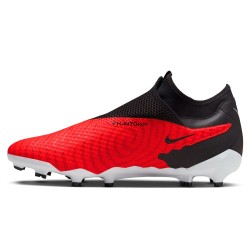 Las Nike Phantom GX Academy FG/MG presentan un diseño intimidante color rojo/negro, la suela combina formas circulares y triangulares para ofrecer una mayor tracción sobre el terreno de juego, la piel sintética con la que esta fabricada ofrece un gran ajuste al pie y un suave golpeo de balón. Este modelo cuenta con los tacos especializados para el césped artificial.