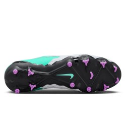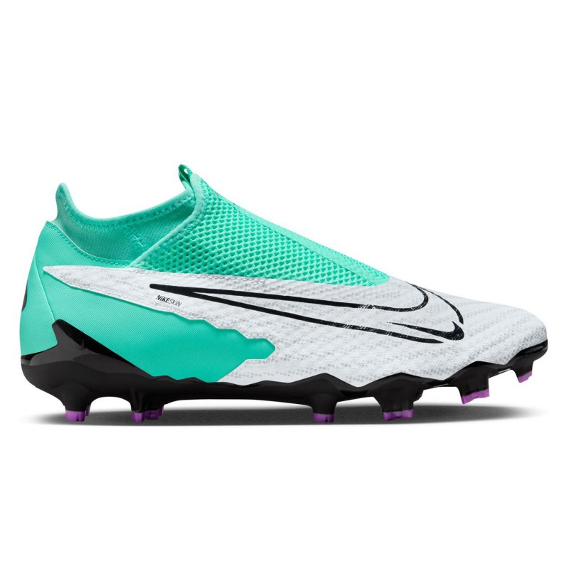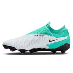 Las Nike Phantom GX Academy DF FG/MG presentan un diseño elegante color blanco/turquesa, la suela combina formas circulares y triangulares para ofrecer una mayor tracción sobre el terreno de juego, la piel sintética con la que esta fabricada ofrece un gran ajuste al pie y un suave golpeo de balón. Este modelo cuenta con los tacos especializados para el césped artificial.