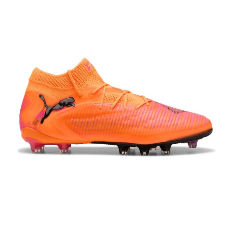 Lleva tu juego al máximo nivel con el rendimiento y el vistoso estilo de las botas de fútbol FUTURE 8 ULTIMATE AG. Ábrete paso por el campo con este modelo revolucionario rompe todos los esquemas con la incorporación de la banda de compresión en el empeine PWRTAPE con la tecnología FusionFit+ Adaptive para proporcionar una sujeción superior añadiendo la posibilidad de jugar incluso sin cordones, además del Dynamic Motion System, diseñado para transferir tu energía directamente al terreno de juego y ofrecer una tracción excelente.
