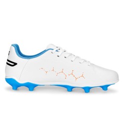 Nueva colección de las Puma King SuperCharge Pack, presentan un limpio y elegante color blanco con el acompañamiento del azul y detalles en naranja. Nueva suela MoveControlPlate que consta con un puente estabilizador y con tacos en forma cónica para una gran adaptación tanto en césped sintético como natural.