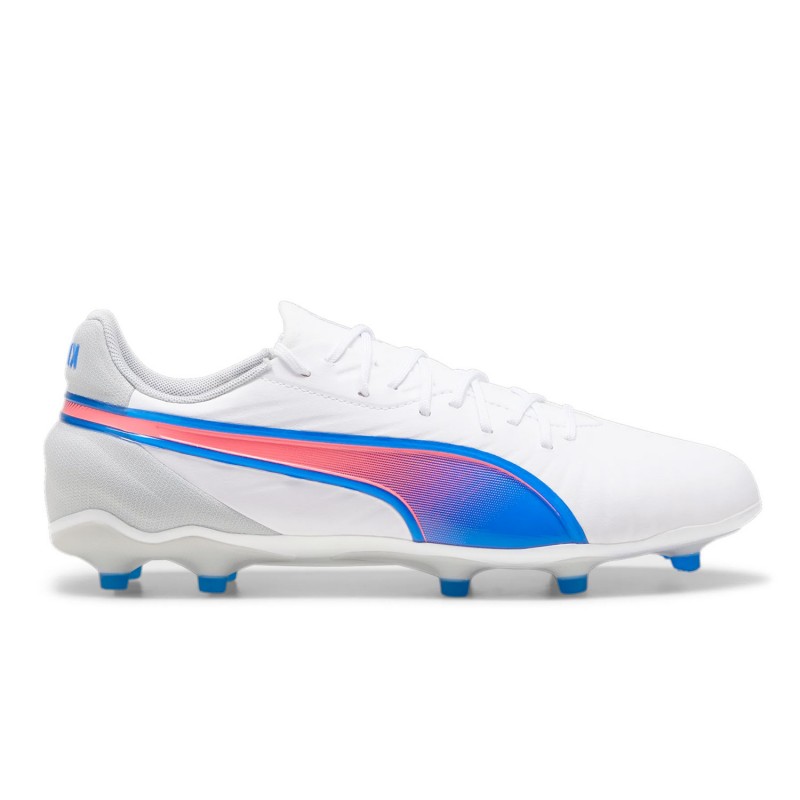 Vuelven las puma King, el clásico de PUMA llega rediseñado, con un estilo más atrevido y materiales sostenibles. Fabricada con la composición K-Better, hecha de un 60% de material reciclado para reducir la huella medioambiental a la vez que mejora la comodidad, la elasticidad y la sensación con el balón, ahora con una suela más ligera con contrafuerte exterior, columna de estabilidad integrada y tacos FG/AG cónicos para controlar los movimientos a la perfección.