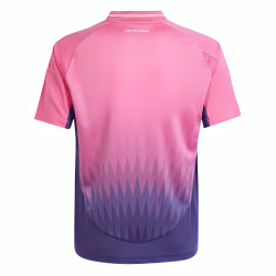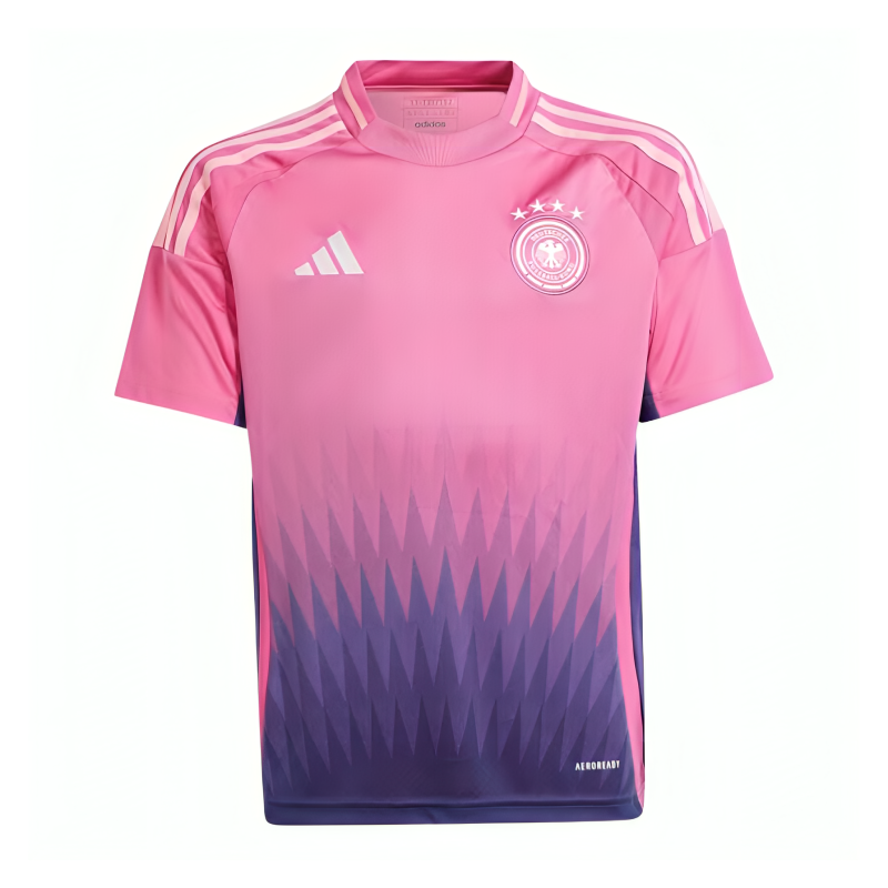 La nueva 2da Equipación de la selección Alemana de fútbol que lucirán en la Eurocopa 2024, presenta un diseño singular nunca antes visto en la Tetracampeona del mundo. Su color vibrante presenta diferentes tonalidades pasando del rosa de la parte de arriba de la camiseta a un violeta oscuro en la zona baja, todo el diseño esta inspirado en las plumas del águila, siendo esta un símbolo muy importante que llevan en el centro de su escudo.