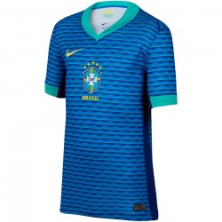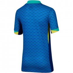 Nueva segunda camiseta de Brasil que utilizaran en la copa América 2024. Su diseño consiste en diferentes tonos del color azul que se distribuyen en franjas horizontales por toda la camiseta, los detalles del cuello y los bordes de las mangas se encuentran en color verde agua.