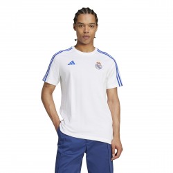 Camiseta Adidas del Real Madrid para la temporada 24/25 de elegante color blanco con detalles en color azul en las 3 líneas de Adidas de los laterales y en su logo bordado del pecho. Fabricado de punto suave para siempre estar cómodo en todo momento, ya sea en el día a día o apoyando a tu equipo desde la grada con todas tus ganas.