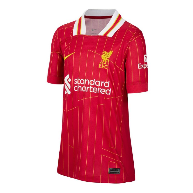 Nueva camiseta del Liverpool FC para la temporada 23/24. Este diseño Stadium combina detalles similares a las utilizadas por los jugadores en los partidos dando una sensación de comodidad pero ofreciendo un ajuste y elasticidad ideales. Su clásico color rojo empapa toda la camiseta solo acompañado de unas finas líneas en color dorado y el blanco en la zona del cuello tipo Polo.