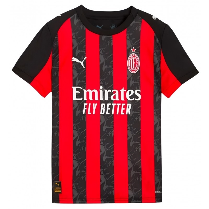 Nueva camiseta del AC Milán para la temporada 2025/2026, diseño que deja atrás las franjas verticales que tanto lo caracterizan para añadir franjas horizontales para crear un diseño clásico manteniendo los colores y diseño del club.