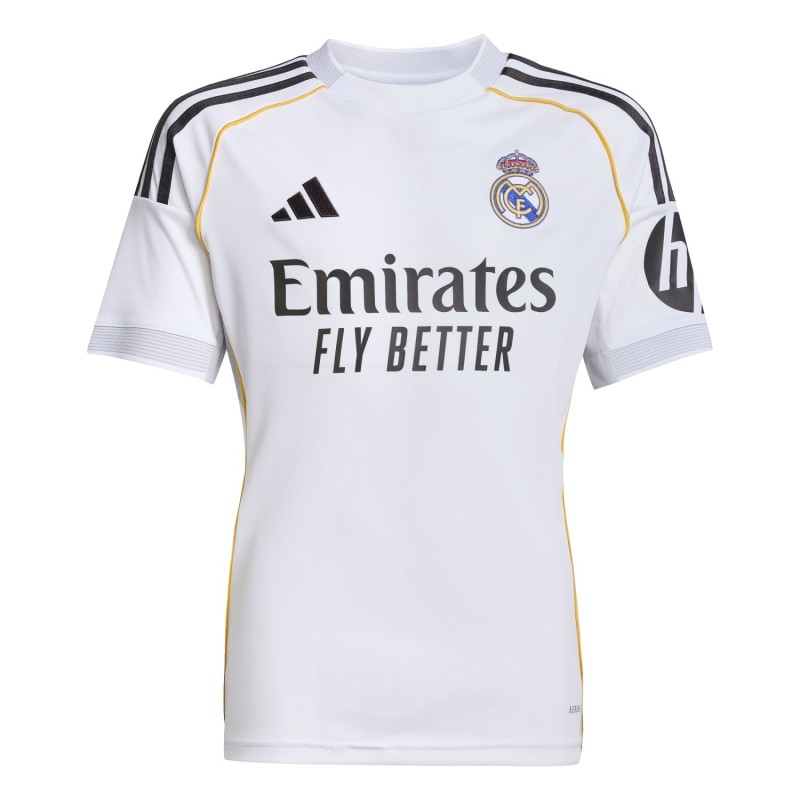 El Real Madrid prepara su nueva temporada con Xabi Alonso y lucirá con los colores que mejor caracterizan al club, presenta una camiseta clásica en color blanco con detalles en amarillo y negro