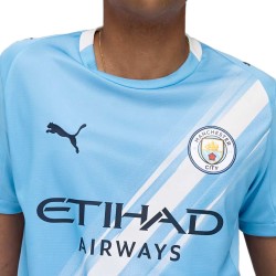 Detalles oficiales: Escudo del Manchester City a todo color en el pecho, logo PUMA bordado y patrocinador Etihad Airways en el centro