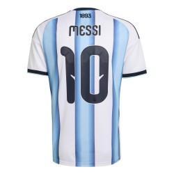 Primera equipación de la Selección Argentina con un diseño de estilo clásico de bandas anchas color celeste y blanca como la bandera de su pais. El parche de campeón del mundo en el centro del pecho lo llevaran con orgullo desde su épica victoria en Qatar. Los detalles y el escudo se encuentran en color dorado como homenaje a sus ultimas competiciones en las que se han coronado campeones.