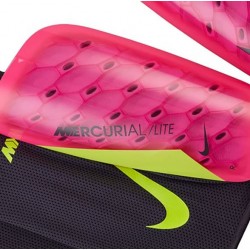 Espinilleras Nike Mercurial Lite con funda de sujeción incluida, espacio en el interior para absorber el impacto.