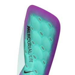 Espinilleras Nike Mercurial Lite con funda de sujeción incluida, su diseño esta pensado para adaptarse de manera ergonómica a la pierna y a sus movimientos naturales. Fabricada de espuma EVA en su capa interior con agujeros para distribuir el impacto de forma optima.