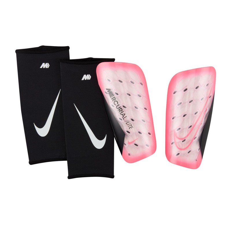 Espinilleras Nike Mercurial Lite con funda de sujeción incluida, el diseño de estas espinilleras Nike permiten el movimiento natural de la pierna en movimiento gracias a su forma ergonómica que brinda un optimo ajuste en todo momento.