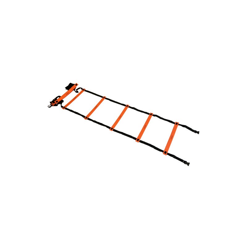 Escalera para el entrenamiento de coordinación y velocidad de los pies, su construcción en tela de cinta y nylon con peldaños planos de goma son ideales para el uso en pistas de tipo indoor debido a su superficie antideslizante.