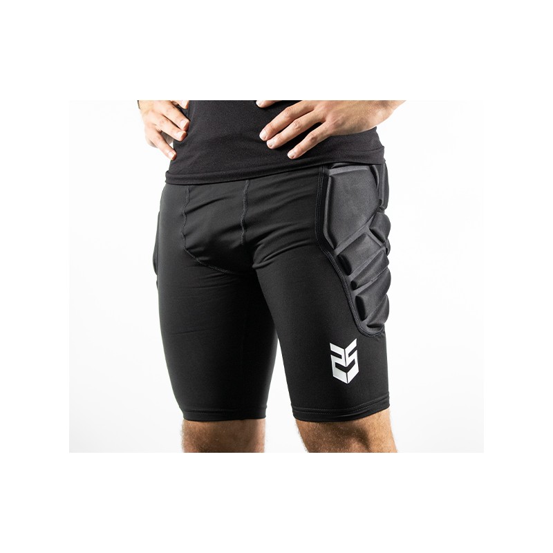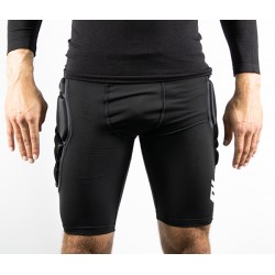 Malla de portero de tejido técnico transpirable 100% poliester de cintura elástico con ajuste de cordón. Protecciones laterales de gran grosor para mitigar el impacto de las voladas laterales durante entrenamientos o partidos.