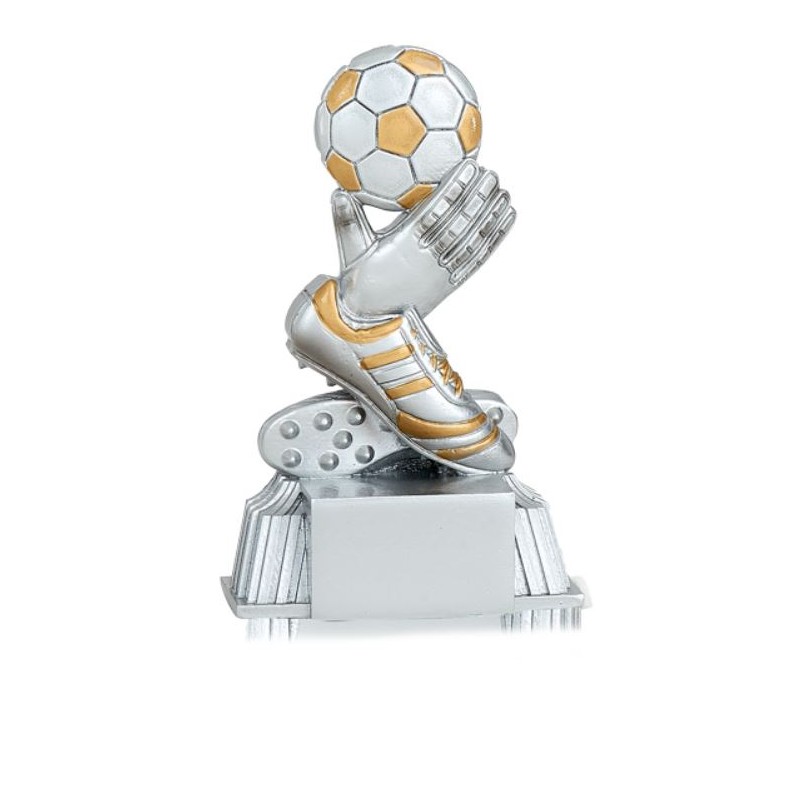 Trofeo de resina con los elementos característicos del portero en color plata metalizado, tamaño de 11 cm ideal para colocar en tu lugar favorito.