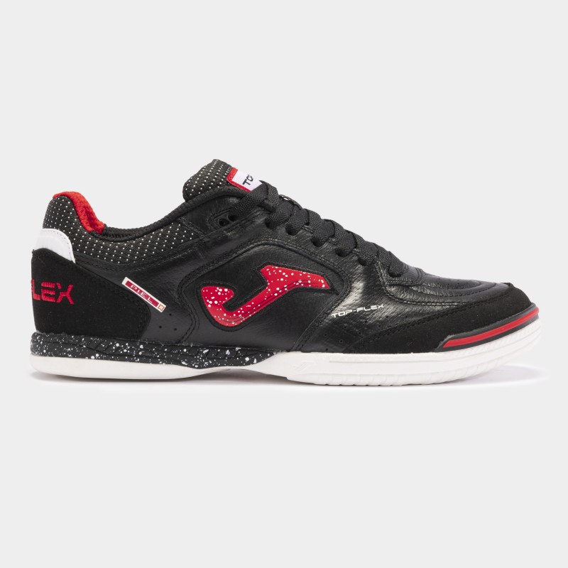 Zapatillas de fútbol sala Joma Top Flex, la mas icónica de la marca, diseñada para superficies duras y pistas indoor. Posee los mejores materiales para brindar las mas altas prestaciones al jugador. Piel flexible, resistente y transpirable, además de contar con una plantilla EVA que forma un colchón amortiguador en cada pisada.